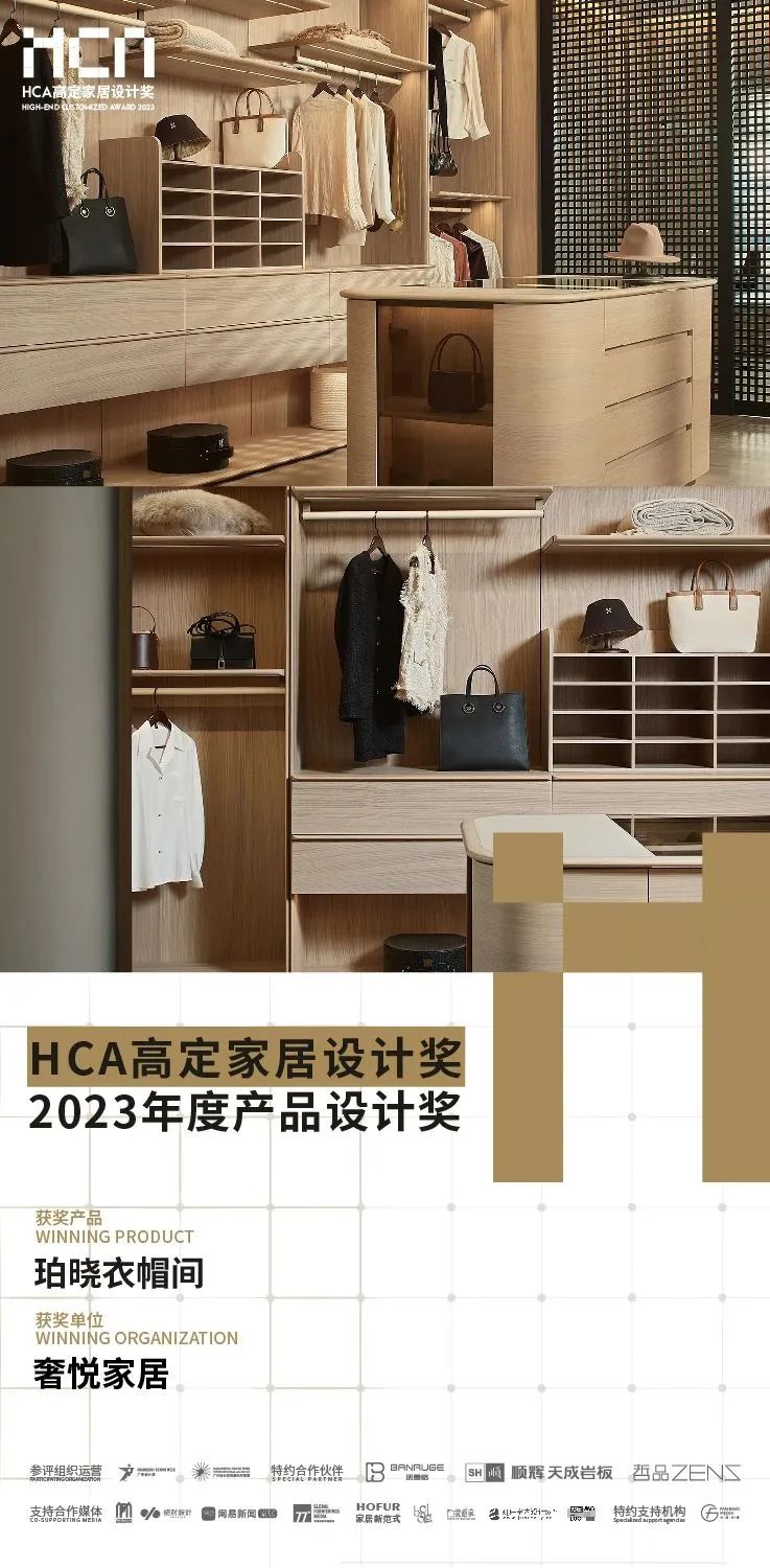 珀曉衣帽間榮獲“HCA高定家居設計獎·2023年度產品設計獎”!對于空間使用者而言,高定家居存在的意義,就在于當下與未